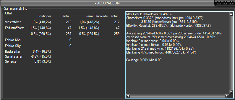 Strategin stänger sin position vid vinst eller senast om 5 dagar efter att positionen har tagits.